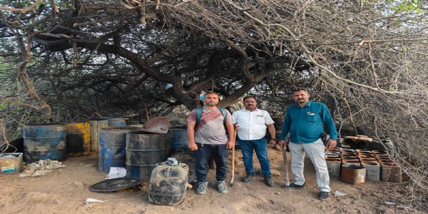 પોરબંદર, 07 એપ્રિલ (હિ.સ.)પોરબંદર લોકલ ક્રાઈમ બ્રાન્ચના ઈન્ચાર્જ પો.ઈન્સ. આર.કે. કાબરીયા ના માર્ગદર્શન મુજબ એલ.સી.બી. સ્ટાફના અધિકારીઓ પેટ્રોલીંગમાં હતા તે દરમ્યાન બરડા ડુંગરમાં દેશી દારૂની ભઠ્ઠી હોવાની બાતમી મળી હતી જે આધારે ડ્રોન કેમેરાની મદદ થી