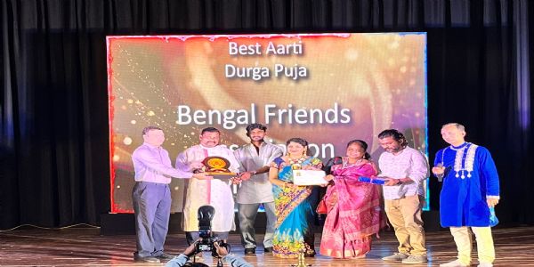 મહેસાણા, 4 નવેમ્બર (હિ.સ.) વડોદરાના પ્રોફેસર સી.સી. મહેતા ઓડિટોરિયમમાં યોજાયેલી સૃજન કલા પરિષદની પ્રતિષ્ઠિત “ઓલ ગુજરાત શેરી ગરબા અને દુર્ગાપૂજા એવોર્ડ સેરેમની 2025”માં મહેસાણાની બંગાલ ફ્રેન્ડ્સ એસોસિએશનને સતત બીજા વર્ષે શ્રેષ્ઠ આરતી કેટેગરીમાં પ્રથ